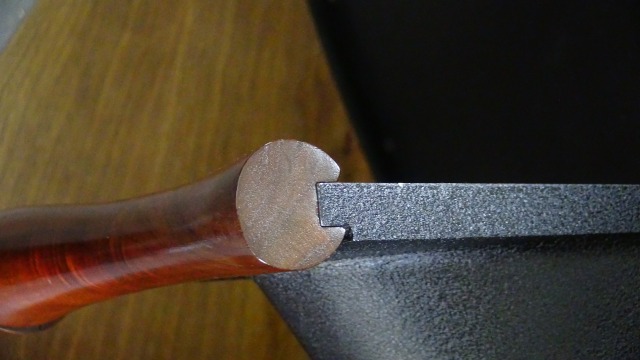 アルミホーンの上辺です。ここのポイントは、前脚上部溝が、ホーンに適正に接合しているかです。