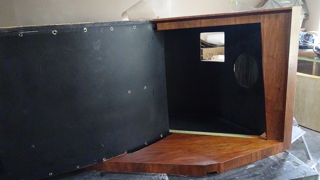 右箱です。 取付のポイントは、リフレクター板の裏側と、インナーホーンの表側に5ミリの空気層が出来るように